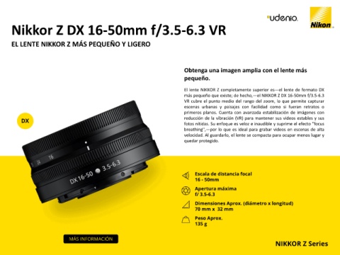 más pequeño que existe; de hecho,—el NIKKOR Z DX 16-50mm f/3.5-6.3