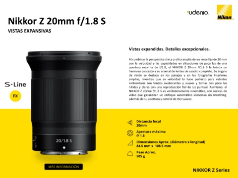 apertura máxima de f/1.8, el NIKKOR Z 20mm f/1.8 S le brinda un