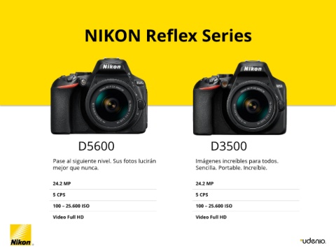 NIKON Reflex Series D5600 D3500 Pase al siguiente nivel. Sus fotos lucirán Imágenes increíbles para todos. mejor que nunca. Sencilla. Portable. Increíble. 24.2 MP 24.2 MP 5 CPS 5 CPS 100 – 25.600 ISO 100 – 25.600 ISO Video Full HD Video Full HD